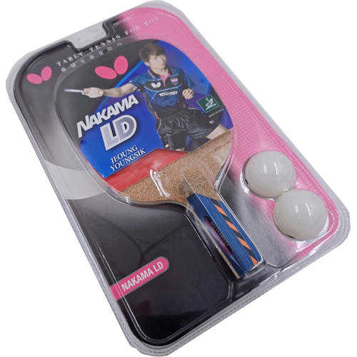 The Nakama LD paddle is a preassembled piece featuring a Japanese penhold style grip with Addoy Red Rubber. The paddle is capable of speed coupled with spin with control for the beginning player. Rubber: ADDOY red. Blade material: Wood. With head case. With 2 balls.