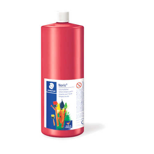 Noris Club School Tempera Paint 8850 02. Red. 1000 ml bottle. Premium quality tempera school paints for school and hobby use. Vibrant, lightfast, colour, opaque. Can be diluted with water. Easy to blend.