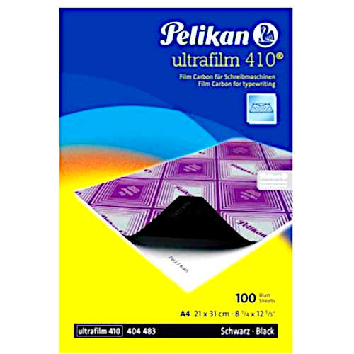 Pelikan Carbon Film 410 For handwriting. Solvent ink on plastic film. Smudge proof. Yields many copies. 100 sheets. Black.