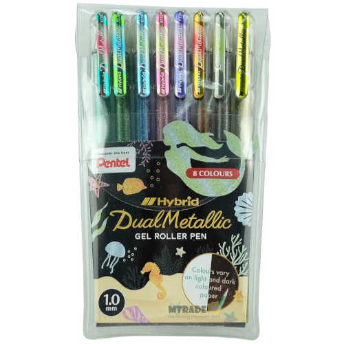 Pentel Hybrid Dual Metallic Liquid Gel Roller Pen 8 color Set K110-8TN